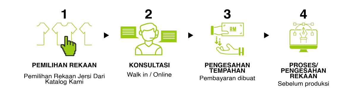 Kami memiliki kilang printing & kilang jahit sendiri yang operasi di Shah Alam, Selangor. Kami tidak menggunakan orang tengah atau kilang lain untuk tempahan pelanggan kami kerana semuanya dihasilkan di kilang kami sendiri. Jadi, setiap pengeluaran dikawal sepenuhnya oleh syarikat terus dari kilang sendiri dan kami dapat menawarkan harga yang lebih murah kepada pelanggan-pelanggan kami.